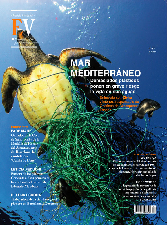 Esta semana sale a distribución, en los Fnac de Plaza Cataluña e Illa Diagonal, el número 07 de la revista «EV» con una foto de portada correspondiente a la campaña de Greenpeace «Menos plásticos, más Mediterráneo», que quiere concienciar a la ciudadanía pero sobre todo a instituciones e industria sobre la compleja situación que se padece, especialmente con gran presencia de micro-plásticos. El crecimiento en el uso de este material en las últimas décadas no tiene parangón en la historia y su impacto está siendo más que grave, preocupante. Incluso, amenazando con introducirse dentro de la cadena alimentaria y llegar hasta nosotros a través de un centenar largo de especies comerciales que ya se ha detectado que ingieren esos plásticos. Hablamos con la responsable de Océanos en España, Elvira Jiménez.