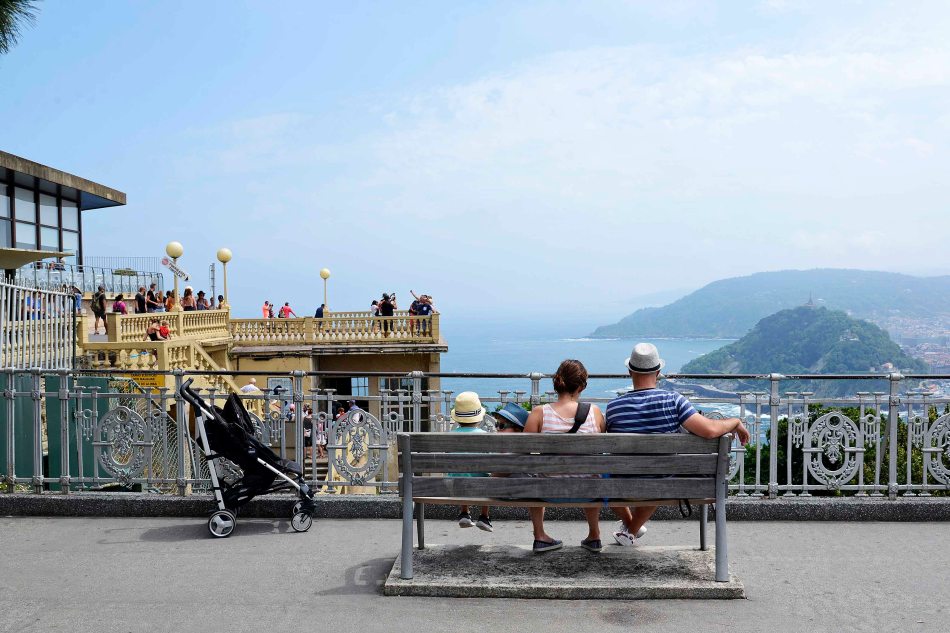 Cogiendo un funicular en la falda del Monte Igueldo se sube hasta lo alto en un trayecto con unas grandes y amplias vistas sobre la Playa de la Concha y buena parte de San Sebastián. El propio funicular ya es por sí mismo digno de visita. Data de 1912, con sus bancos de madera y que por aquellos tiempos usaban los donostiarras para subir al casino o salón de baile. Nosotros no pudimos disfrutar de esa experiencia ya que subimos en coche (que también se puede hacer, hay zona de aparcamiento en lo alto). Arriba, como ya se ha dicho y como desde el propio Ayuntamiento promueven, se encuentran algunas de las vistas más «emblemáticas» y conocidas sobre la ciudad. En nuestro caso, la bruma nos estropeaba algo la imagen. No así, en sentido contrario. De espaldas a San Sebastián se abrían unas panorámicas sobre la agreste y casi violenta costa guipuzcoana bañada por las salvajes olas del Mar Cantábrico ( u Océano Atlántico, según se mire).