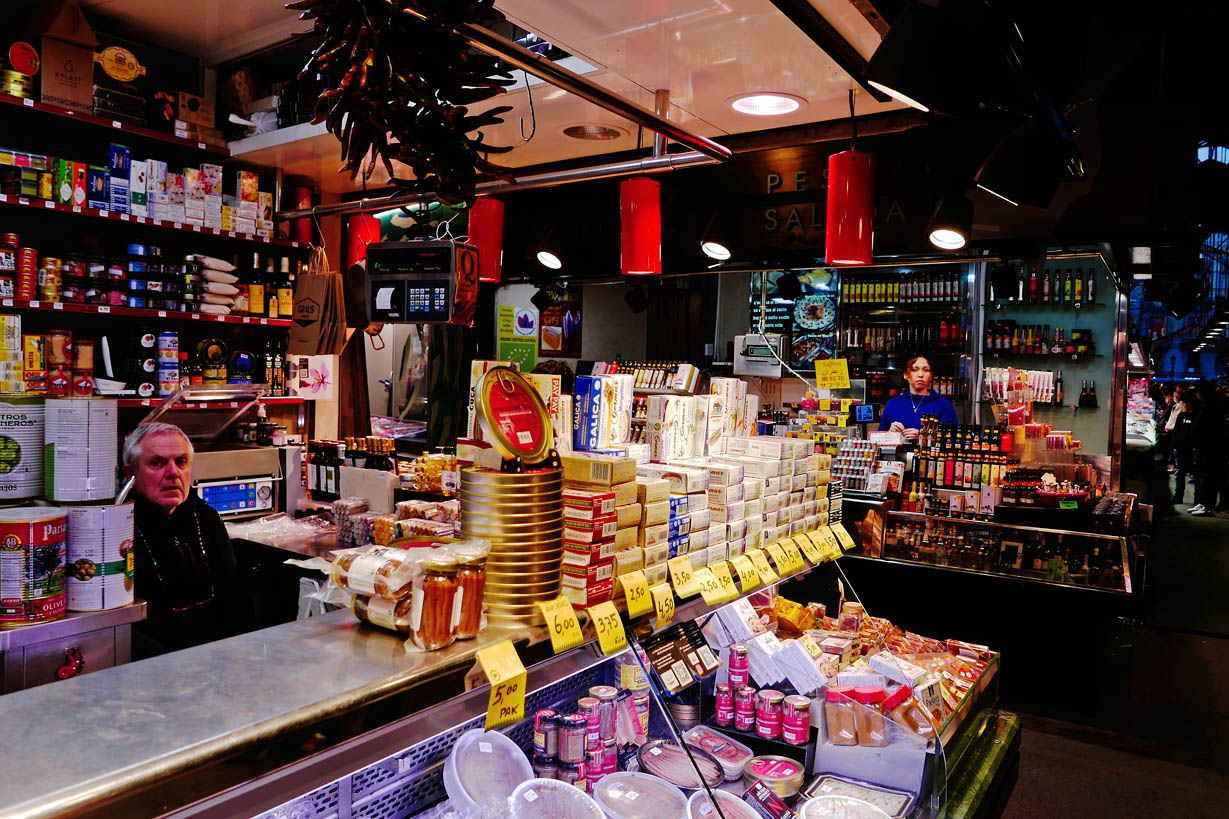 Nosotros lo visitamos atraídos, por supuesto, por su fama y por ser uno de los principales y más recomendables lugares para visitar en Barcelona. Antes de ir, consultamos en Internet cuál era la mejor hora para hacerlo. Estábamos fuera de horario o, mejor (según se mire), acudíamos en uno de los momentos más álgidos, cuando el volumen de personas era uno de los más elevados de la jornada: sobre las 11 h. Nos interesaba hacerlo de este modo para -dentro de unos márgenes mínimamente cómodos- llevarnos una instántanea aproximada de la realidad de este mercado. Inglés, francés, alemán, chino, ruso… eran las fisonomías e idiomas más fáciles y habituales de interpretar. Raro fue, sinceramente, oir conversaciones en idiomas autóctonos.