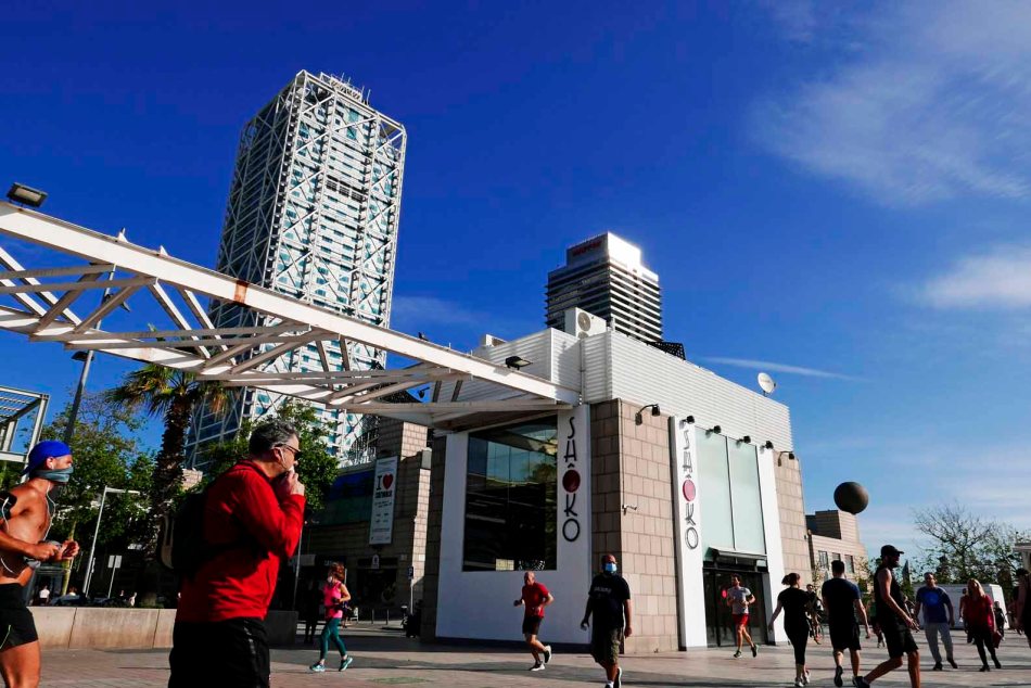 En Barcelona en un paseo tranquilo de hora y media hasta el frente marítimo, escenas de decenas de personas andando, corriendo, en bicicleta, patinando… Gente que probablemente antes del confinamiento no estaba muy avezada a la práctica deportiva pero que tras lo vivido con el confinamiento ha recuperado las zapatillas del armario para darle algo de vida al cuerpo y a la cabeza. Frente al mar, casi imposible mantener las distancias recomendadas entre personas y que deben moverse entre uno y dos metros. Mucha, mucha gente. Sonrisas y expresiones agradables en sus rostros, aprovechando después de casi 50 días, la que probablemente sea la salida más larga en este tiempo.