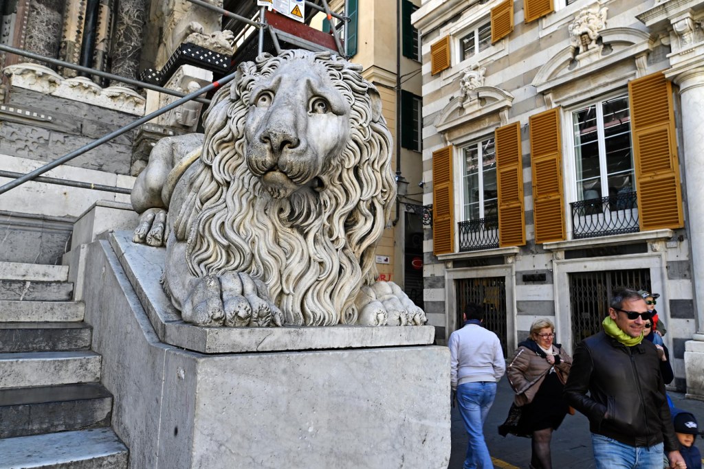 De hecho, la gran catedral de la ciudad, la de San Lorenzo, construída en el siglo XI y dedicada al mártir del mismo nombre, conserva en uno de los pasillos de la parte derecha una reproducción de una bomba caída sobre ella, lanzada por las tropas británicas en 1941 sobre la ciudad y que fue uno de los peores sufridos por la ciudad de Génova durante aquel episodio bélico y muy trágico para todos los contendientes y la historia del continente. La Catedral, de característicos colores negro y blanco, es francamente espectacular, tanto por dentro como por fuera. Sus puertas medievales fueron restauradas en el siglo XIX, como transformada fue toda la catedral desde su fundación -se realizó donde antes se encontraba una basílica de los siglos V-VI d.C.-, hasta superado el siglo XVII. De ahí, que pese a que orginariamente fuera de estilo románico, añadió otros estilos siendo el gótico uno de los más presentes. La Catedral, según leemos, guarda los restos del patrón San Giovanni Battista, trasladados a esta ciudad italiana tras la primera cruzada.