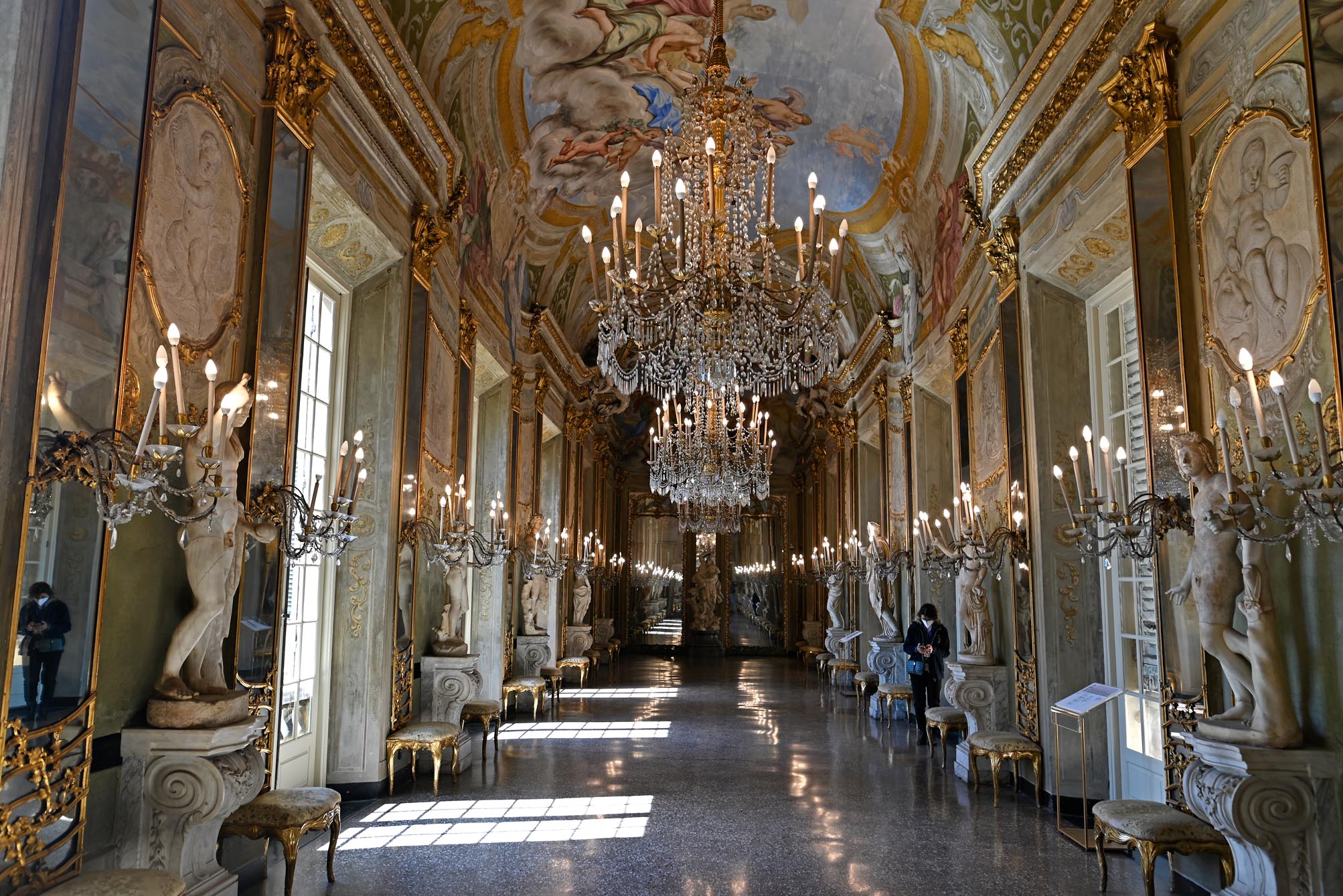 Nosotros echamos un vistazo a alguno de ellos, aunque el que visitamos con mayor detenimiento fue el Palazzo Reale. Éste debe dicha consideración a la familia Savoya, que lo adquirió en el siglo XVIII y lo conservó hasta 1919, cuando el rey Víctor Manuel III lo cedió al estado de Italia. Destaca su gran profusión de esculturas, cuadros, muebles… Y, sobre todo, la Galería de los Espejos, diseñada por el segundo de sus inquilinos -los primeros fueron la familia Balbi-, Eugenio Durazzo. Rubens, por cierto, en el siglo XVII, había señalado a este palacio como el referente para el conjunto de la nobleza europea.
