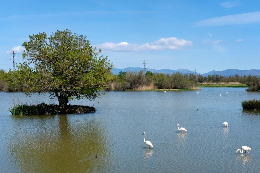 en décadas como consecuencia del cambio climático, podían verse numerosos ejemplares este mes de abril (2023) sin demasiadas dificultades. Bello, elegante: es todo un espectáculo. Los humedales del Empordà son uno de los más importantes de Catalunya junto, respectivamente a los localizados en las desembocaduras de los ríos Ebro y Llobregat En el caso de los ‘Aiguamolls de l’Empordà’, se producen en un espacio no exageradamente grande (el Parque tiene una superfície de 4.729 hectáreas), comprendido entre el final de los cauces de los ríos Fluvià y Muga.