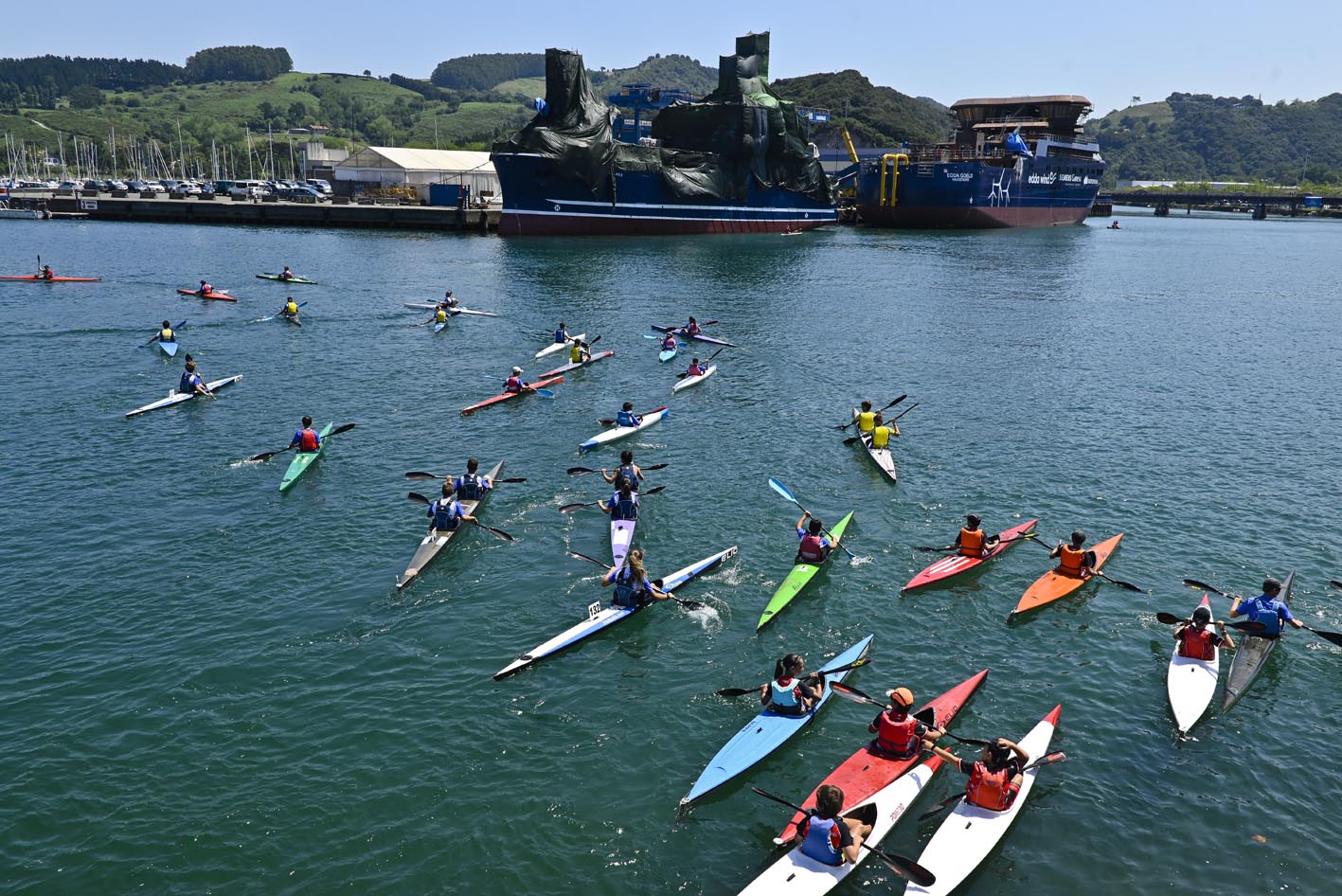 Varias decenas de metros más adelante, un puente nos permitió cruzar de un lado al otro del río y hacerlo mientras, parecía, se estaba disputando una competición juvenil de remo o similar. Y es que, ya se sabe que en esta zona, así como en el conjunto del norte peninsular (con Asturias, Cantabria y Galicia), hay tradición por estos deportes como ponen de manifiesto los nombres de grandes figuras olímpicas. Aquel día muchos chavales se congregaban sobre el agua. Los espectadores, seguramente muchos, amigos y familiares pero también curiosos, echaban un ojo para ver qué sucedía.