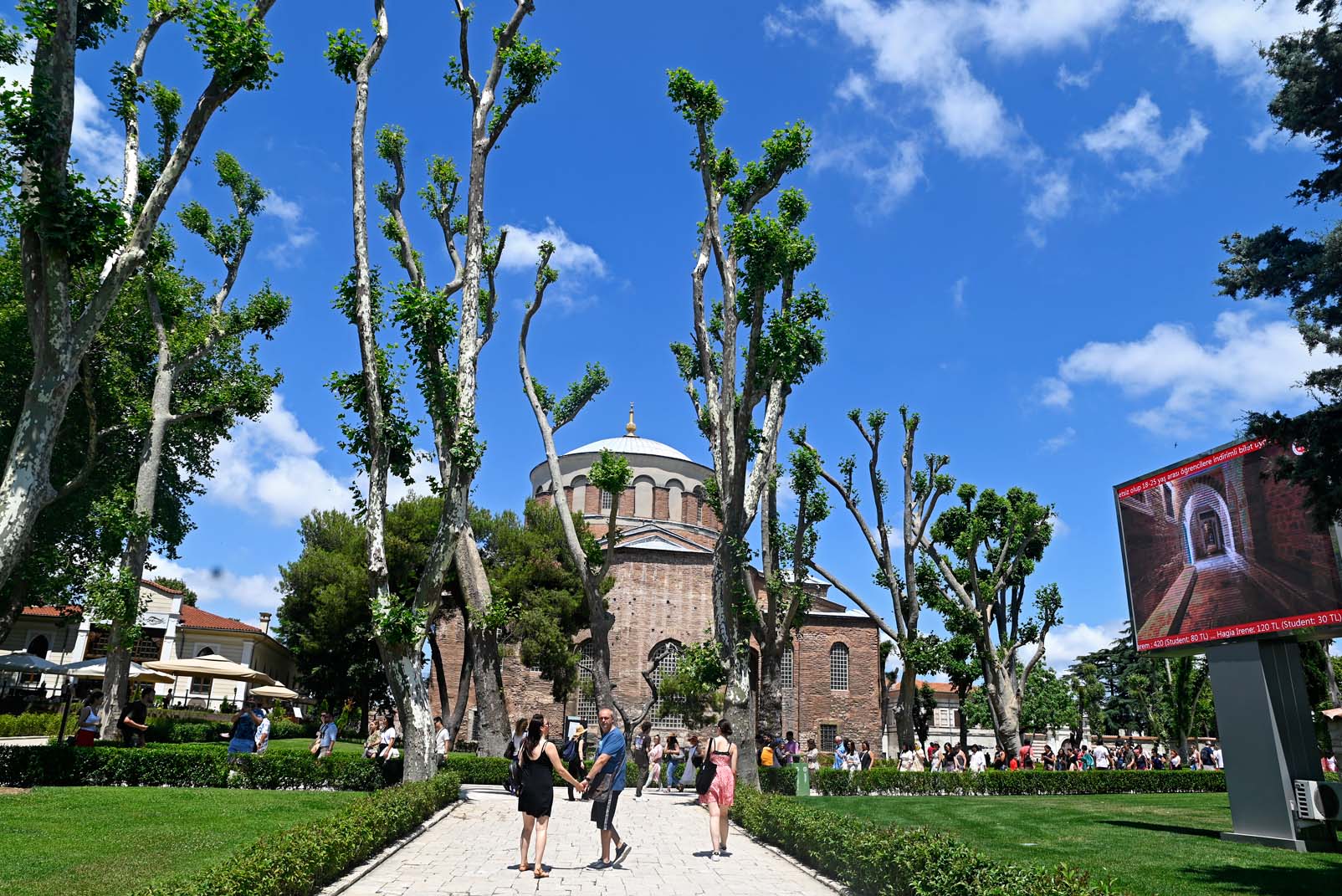 De ella hay mucho por destacar, pero de todo ello sobresalen en especial tres edificios muy emblemáticos y de enorme proyección e importancia mundial, como son las mezquitas Azul y de Santa Sofía y el Palacio Topkapi. Santa Sofía fue durante mucho tiempo una basílica cristiana de rito ortodoxo, que data de época de Justiniano I, en el siglo VI, aunque hay quien apunta que podría haber existido una iglesia anterior que se habría erigido bajo el gobierno de Constantino. La basílica pasó a ser mezquita tras la derrota de la ciudad frente a las tropas de Mehmet II, que en un breve periodo de tiempo y ante un templo en un estado bastante dañado (fue saqueado tras la victoria) la reconvirtió en mezquita, pasándo a llamarse -y como todavía se conoce en turco- de «Ayasofya».