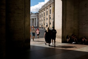 Camino de la Plaza de San Pedro, ya muy cerca y bajo una pequeña galería a cobijo del sol.