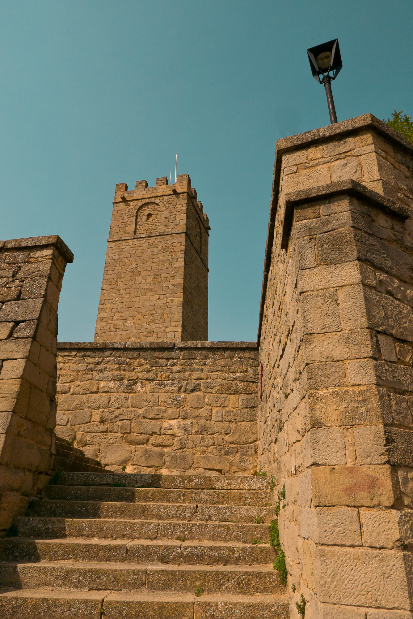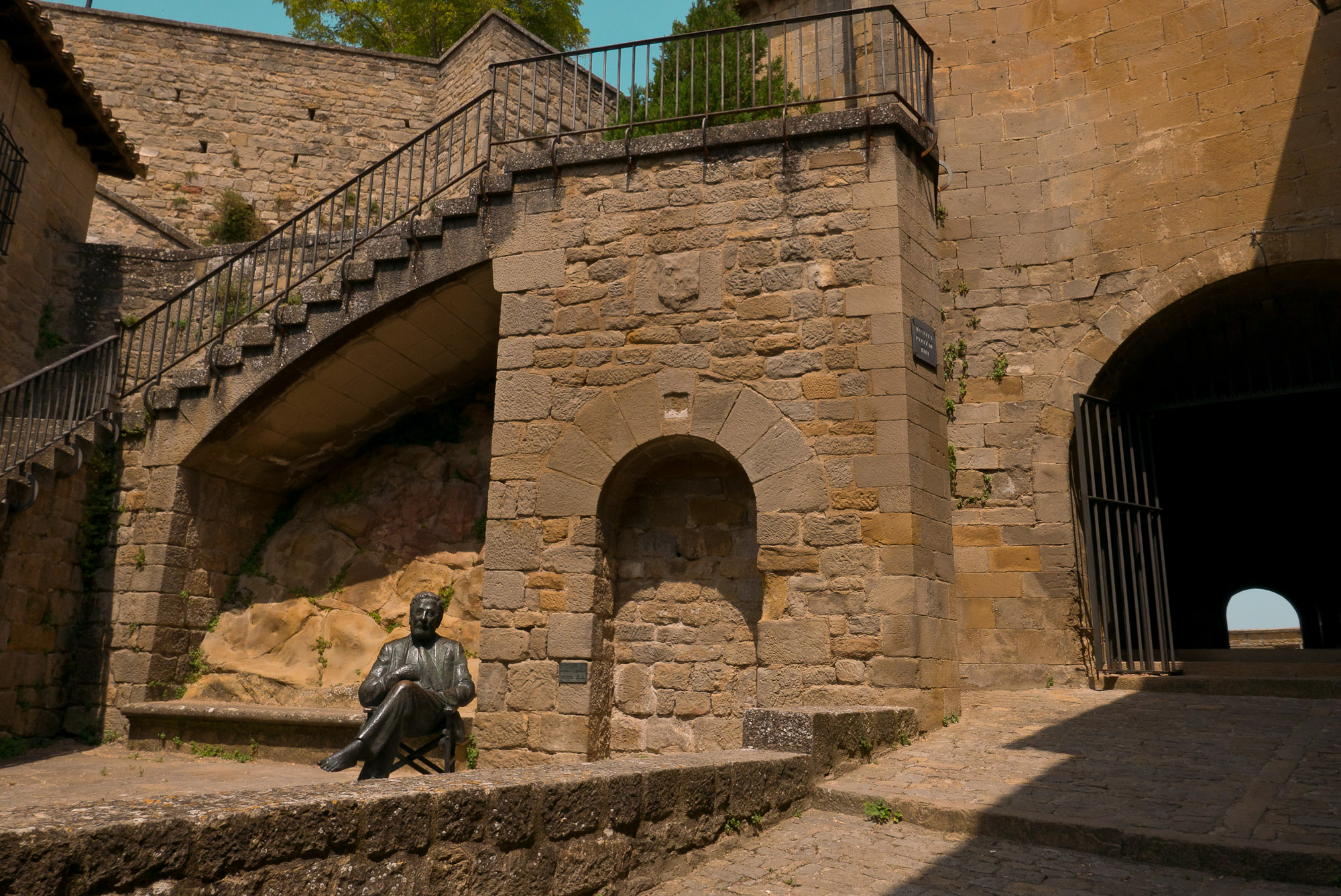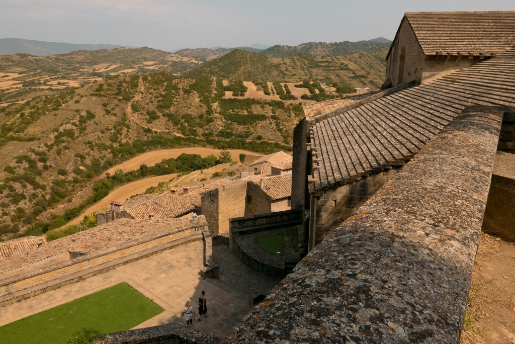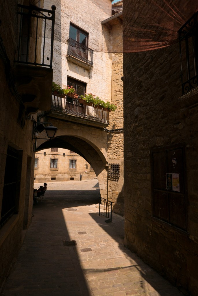 La muralla, con sus miradores, explica en buena medida su valor, con amplias panorámicas sobre toda esta zona del noroeste de Aragón, que cuenta con accesos imponentes como el Portal de Zaragoza. Se aparca fuera y se entra a pie, con buenas indicaciones que permiten orientarse por la antigua judería, casco histórico y llegar sin pérdida -o prácticamente, el pueblo es pequeño y se puede visitar cómodamente en una mañana o tarde- a la plaza del Ayuntamiento. Ésta, porticada, es el centro neurálgico y un lugar ideal y habitual de los vecinos para comer o tomar algo. Hay un par de restaurantes o bares en la zona. Además, cerca se encuentra otro de los lugares de mayor interés de la villa: la iglesia de San Esteban, del siglo XI, románica, y que destaca también por su cripta.
