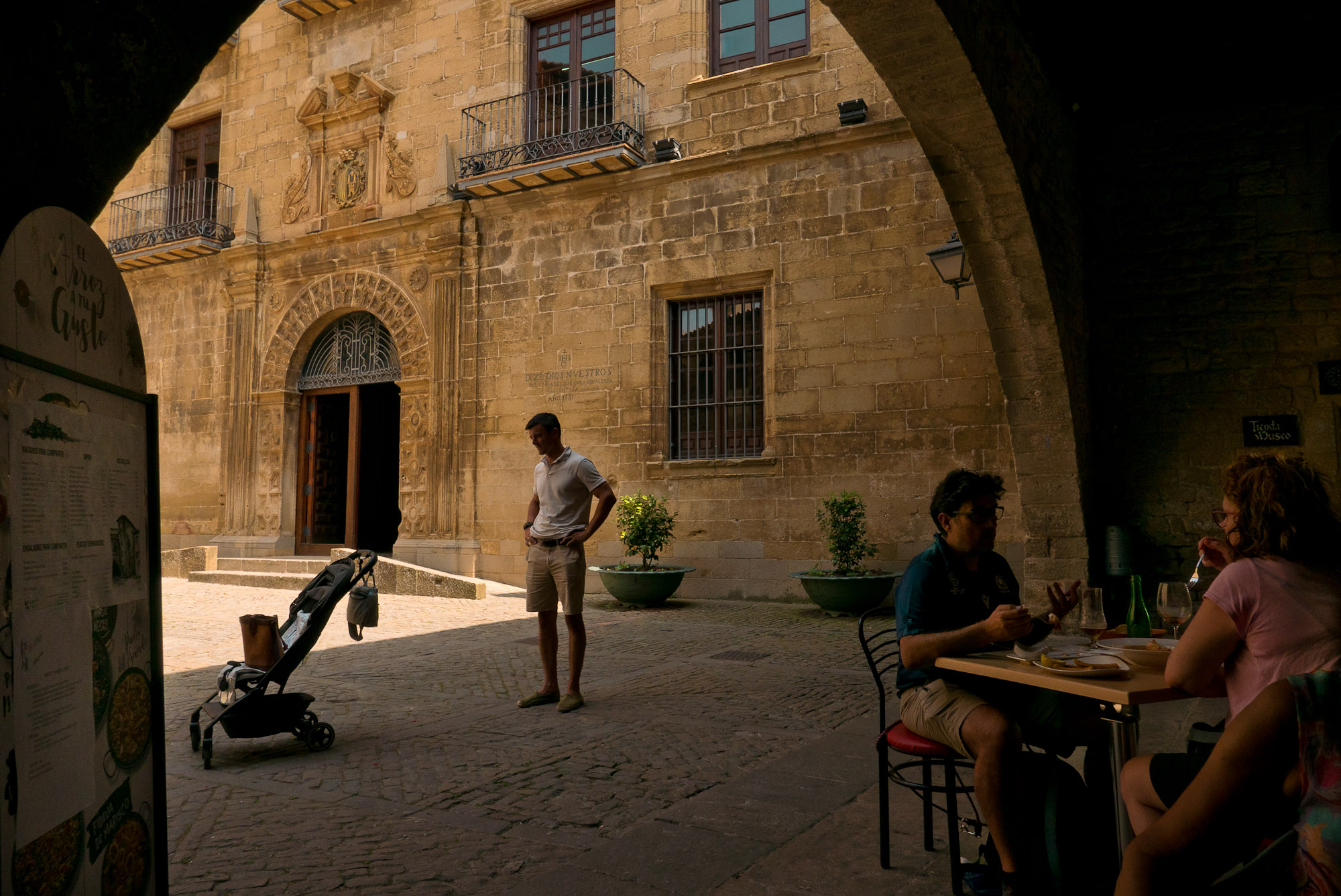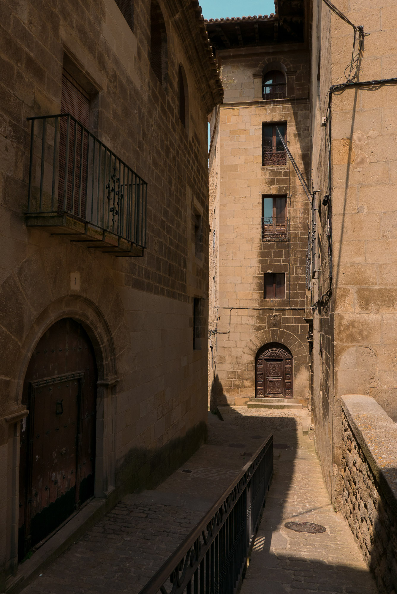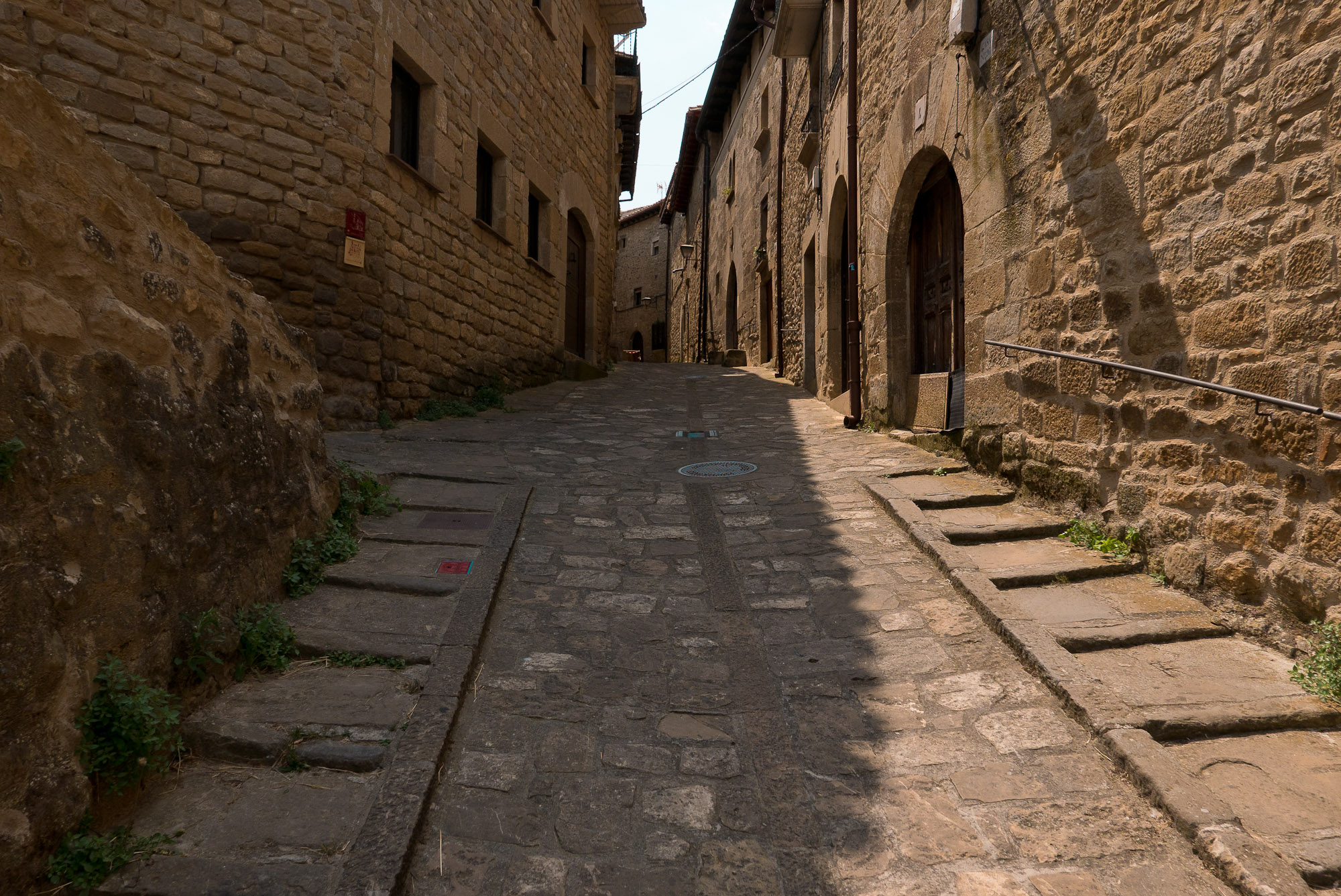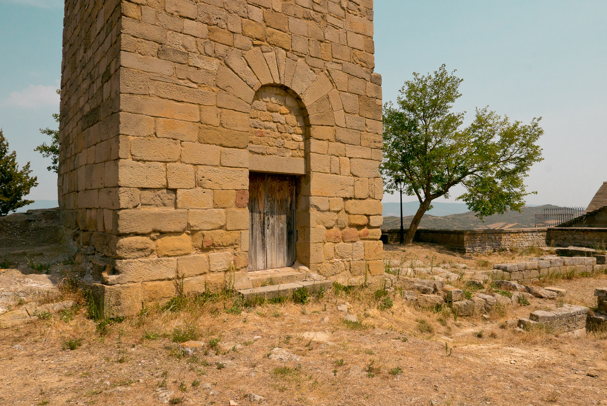 La muralla, con sus miradores, explica en buena medida su valor, con amplias panorámicas sobre toda esta zona del noroeste de Aragón, que cuenta con accesos imponentes como el Portal de Zaragoza. Se aparca fuera y se entra a pie, con buenas indicaciones que permiten orientarse por la antigua judería, casco histórico y llegar sin pérdida -o prácticamente, el pueblo es pequeño y se puede visitar cómodamente en una mañana o tarde- a la plaza del Ayuntamiento. Ésta, porticada, es el centro neurálgico y un lugar ideal y habitual de los vecinos para comer o tomar algo. Hay un par de restaurantes o bares en la zona. Además, cerca se encuentra otro de los lugares de mayor interés de la villa: la iglesia de San Esteban, del siglo XI, románica, y que destaca también por su cripta.